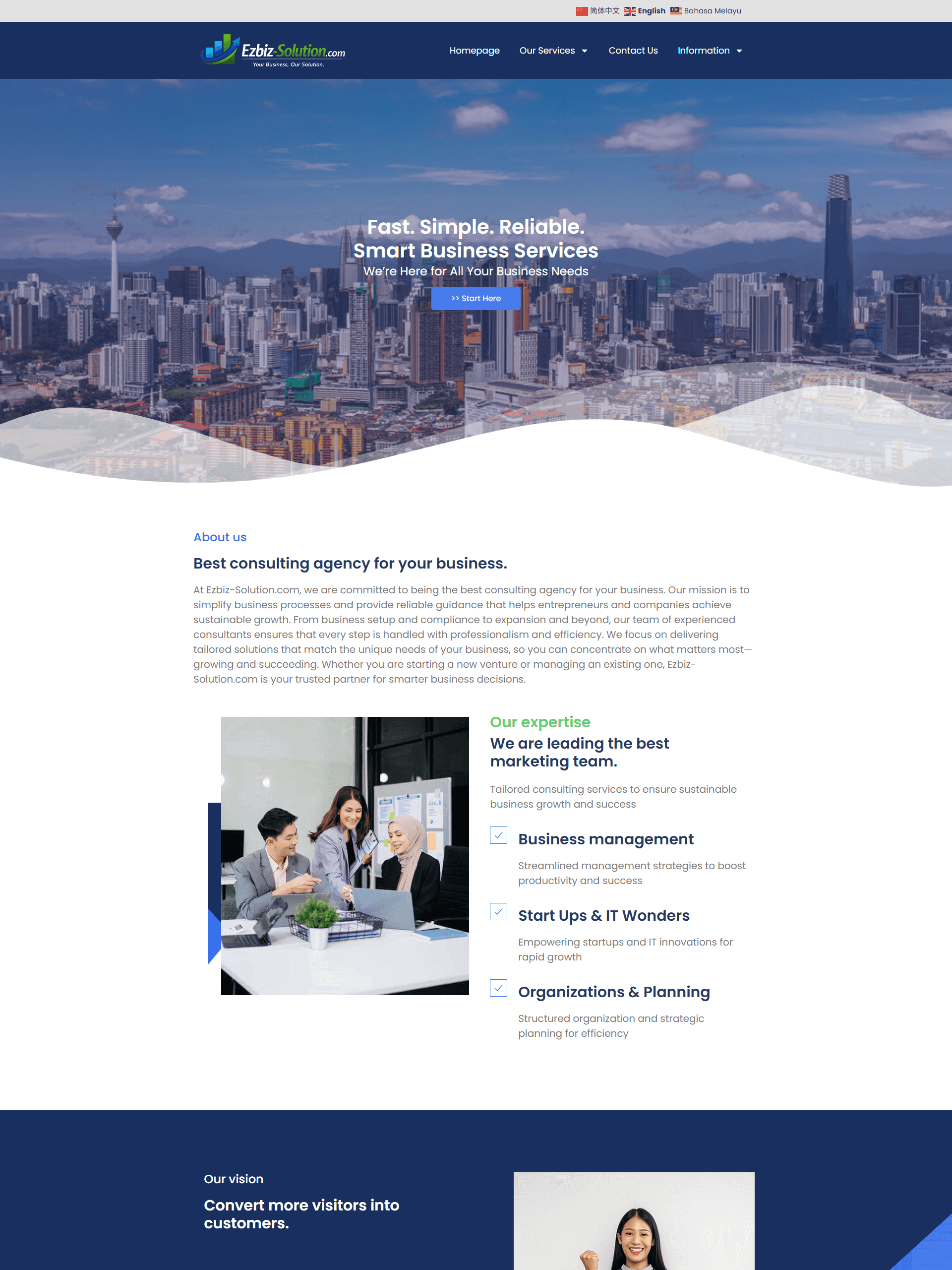 From domain registration to website launch, from content setup to ongoing maintenance.
